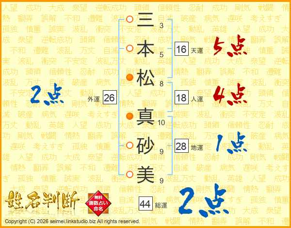 三本松真砂美さんの総運は44画の2点!