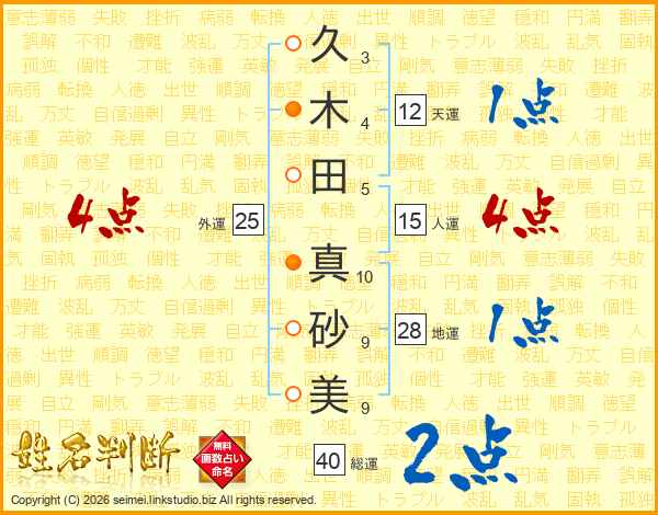 久木田真砂美さんの総運は40画の2点!
