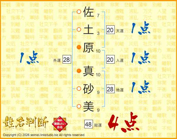 佐土原真砂美さんの総運は48画の4点!