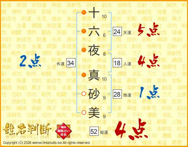 十六夜真砂美さんの総運は52画の4点!