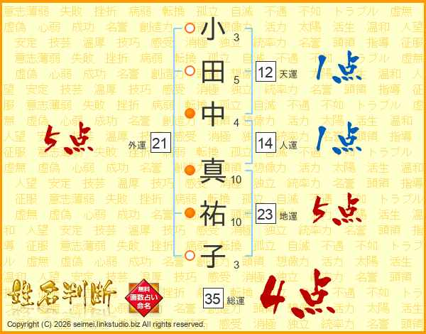 小田中真祐子さんの総運は35画の4点!