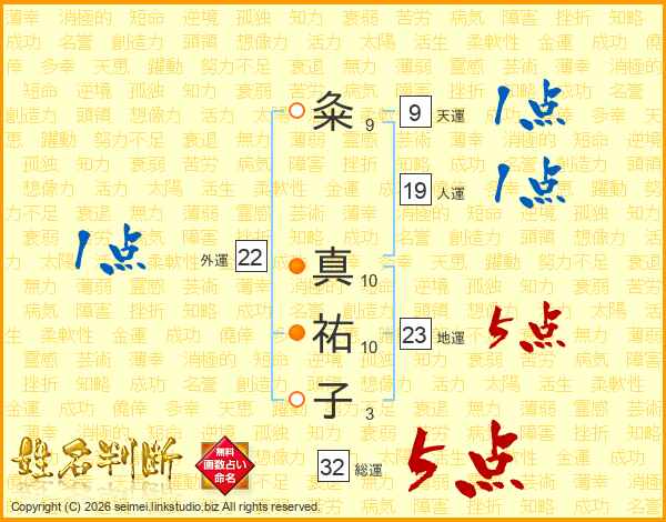粂真祐子さんの総運は32画の5点!