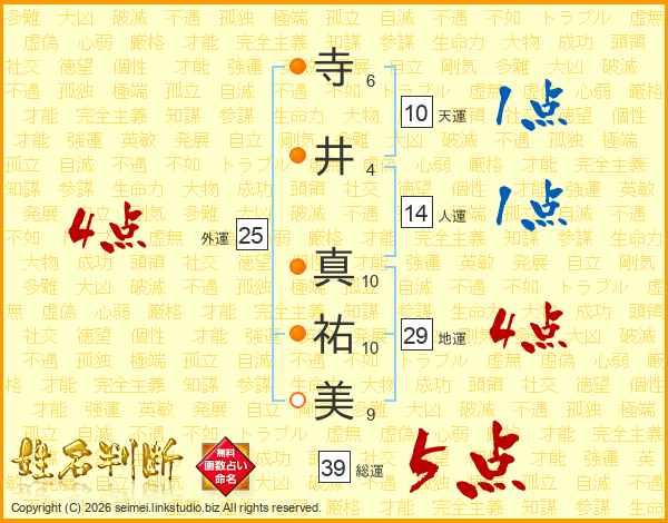 寺井真祐美さんの総運は39画の5点!