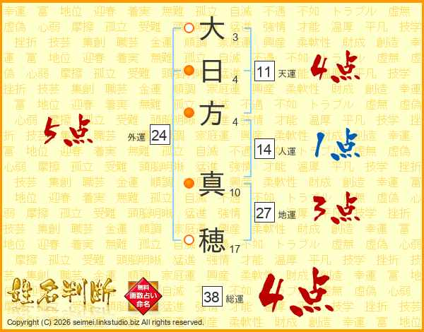 大日方真穂さんの総運は38画の4点!