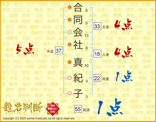 合同会社真紀子さんの天運は33画の4点!