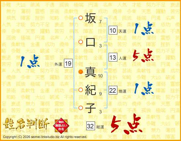 坂口真紀子さんの総運は32画の5点!