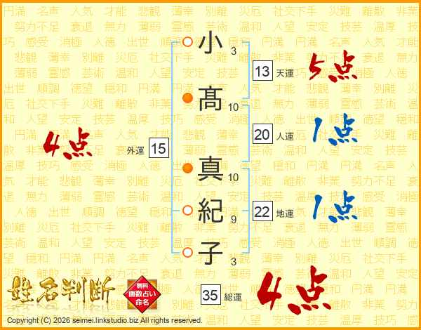 小髙真紀子さんの総運は35画の4点!