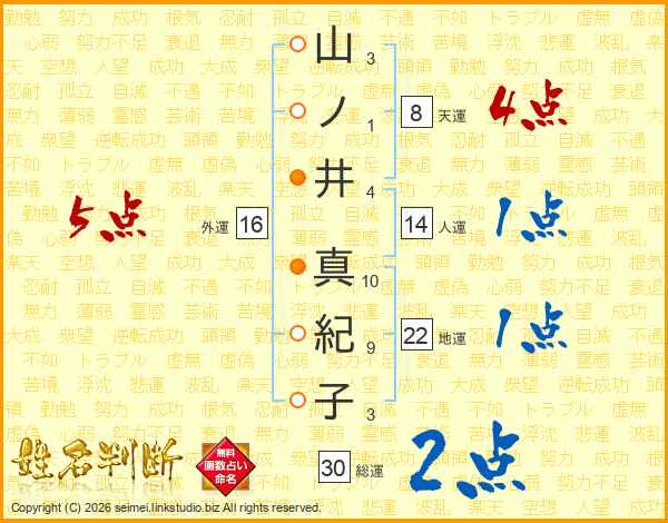 山ノ井真紀子さんの総運は30画の2点!