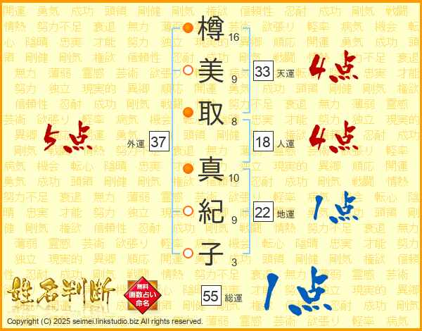樽美取真紀子さんの天運は33画の4点!