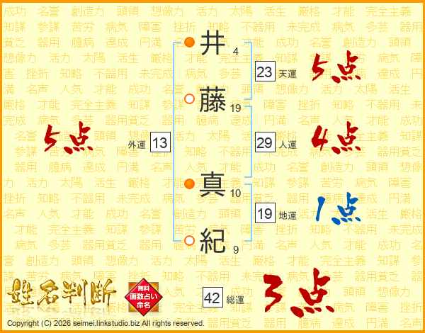 井(4画)藤(19画) 真(10画)紀(9画)