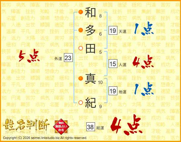 和多田真紀さんの総運は38画の4点!