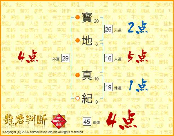 寳地真紀さんの総運は45画の4点