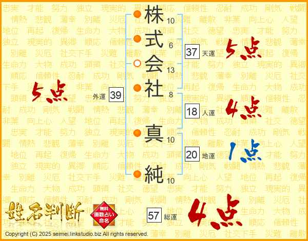 株(10画)式(6画)会(13画)社(8画) 真(10画)純(10画)