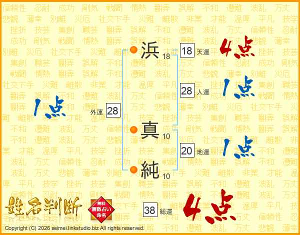 浜真純さんの総運は38画の4点!