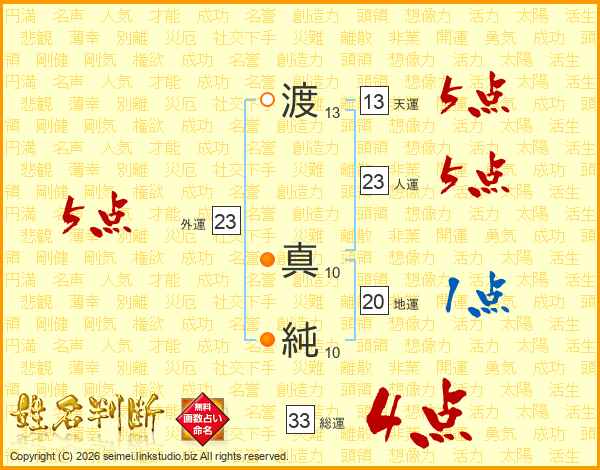 渡真純さんの総運は33画の4点!