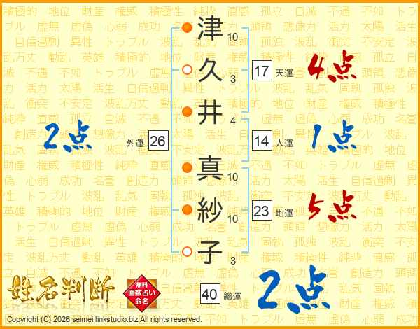 津久井真紗子さんの外運は26画の2点!