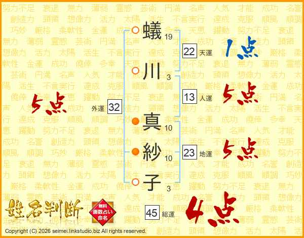 蟻川真紗子さんの総運は45画の4点!