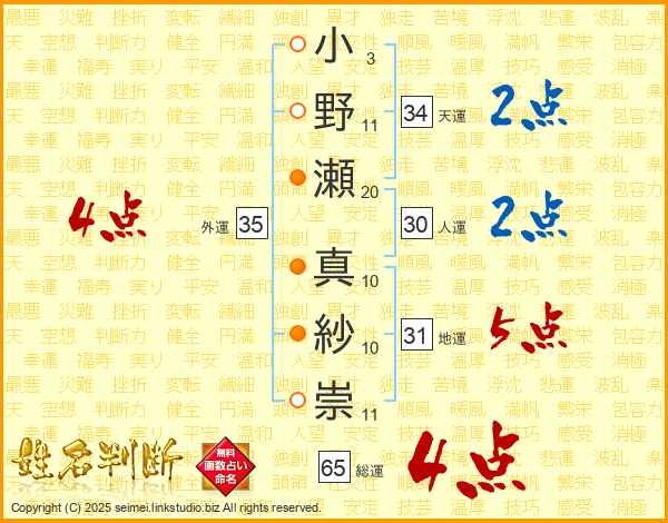 小野瀬真紗崇さんの外運は35画の4点!