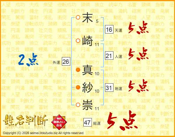 末崎真紗崇さんの総運は47画の5点!