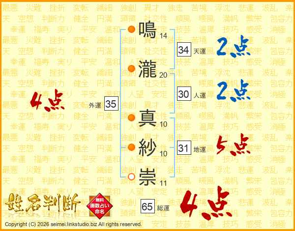 鳴瀧真紗崇さんの総運は65画の4点!