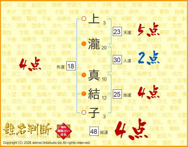上瀧真結子さんの外運は18画の4点!