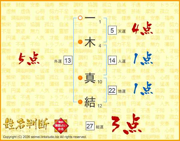 一木真結さんの総運は27画の3点!