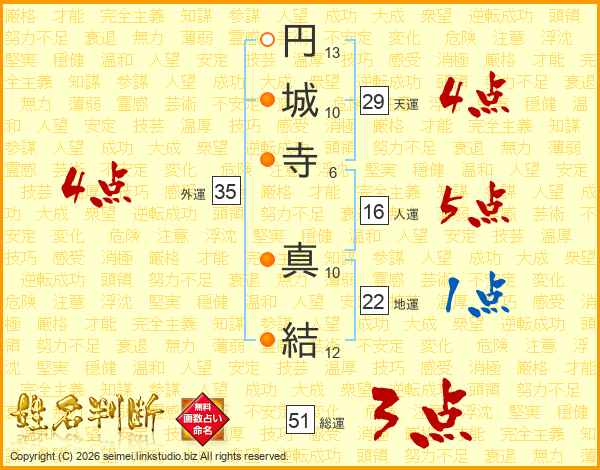 円城寺真結さんの外運は35画の4点!