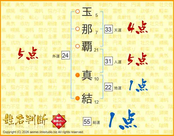玉那覇真結さんの外運は24画の5点!