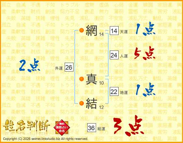 網真結さんの天運は14画の1点!