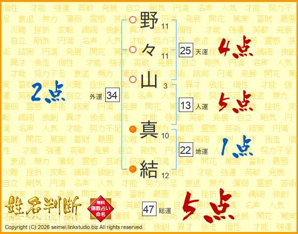野々山真結さんの天運は25画の4点!