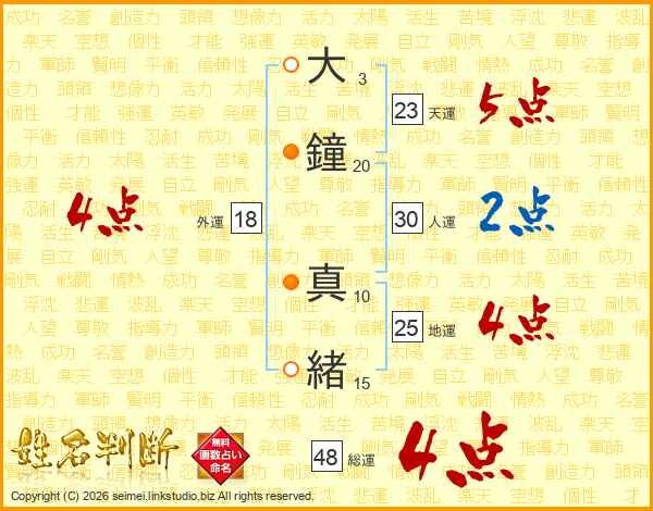 大鐘真緒さんの総運は48画の4点!