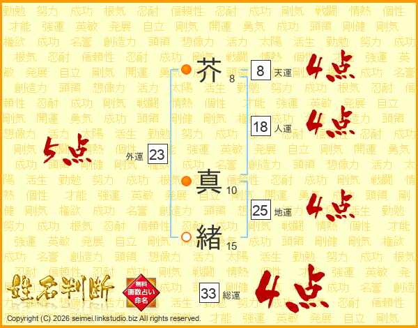 芥真緒さんの総運は33画の4点!