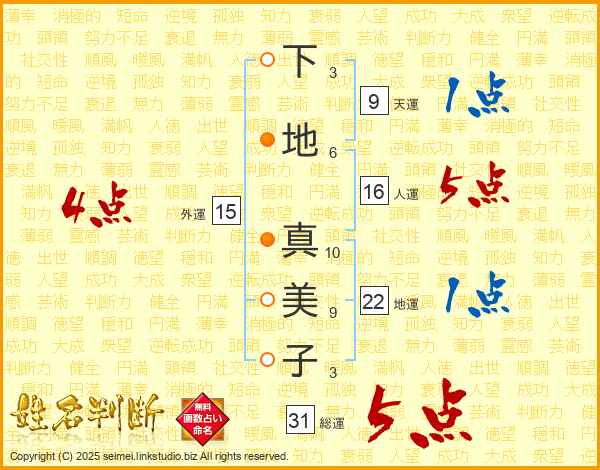 下地真美子さんの総運は31画の5点!