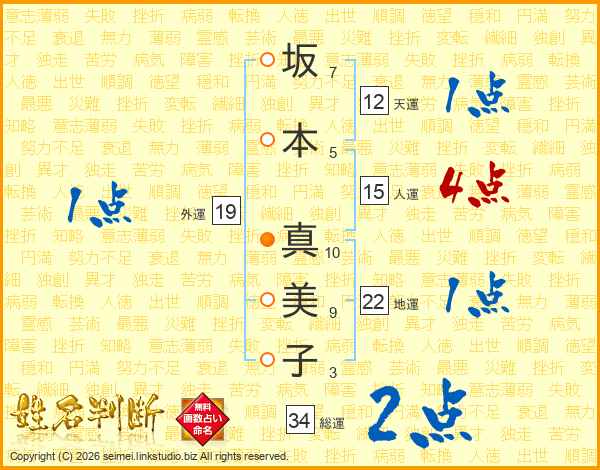 坂本真美子さんの人運は15画の4点!