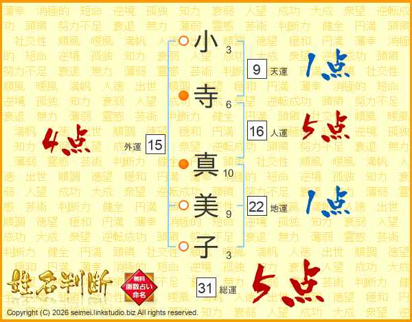 小寺真美子さんの総運は31画の5点!