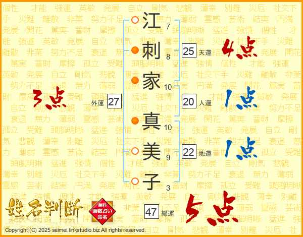 江刺家真美子さんの総運は47画の5点!