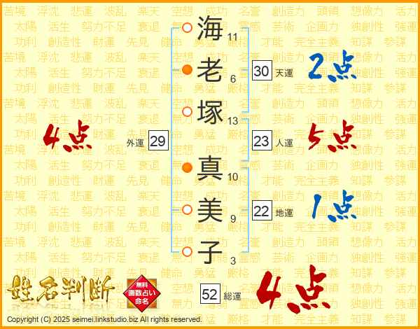 海老塚真美子さんの総運は52画の4点!