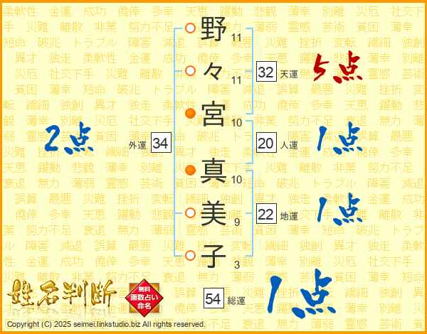 野々宮真美子さんの総運は54画の1点!
