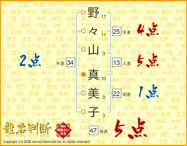 野々山真美子さんの総運は47画の5点!