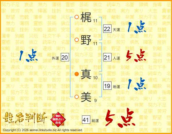 梶野真美さんの天運は22画の1点!