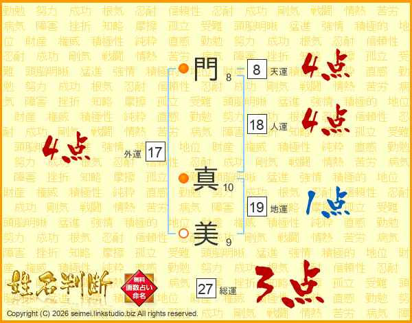 門(8画) 真(10画)美(9画)