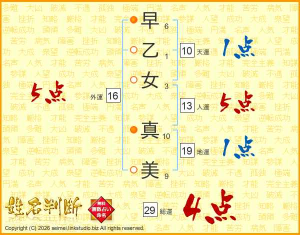 早乙女真美さんの外運は16画の5点!
