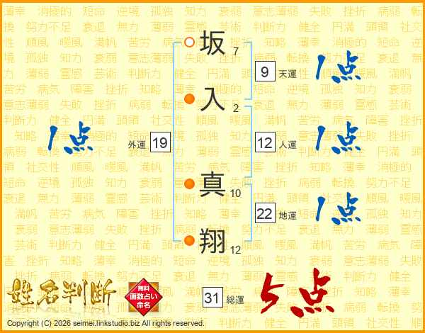 坂入真翔さんの総運は31画の5点!