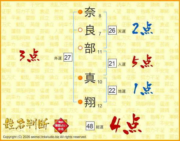 奈良部真翔さんの総運は48画の4点!