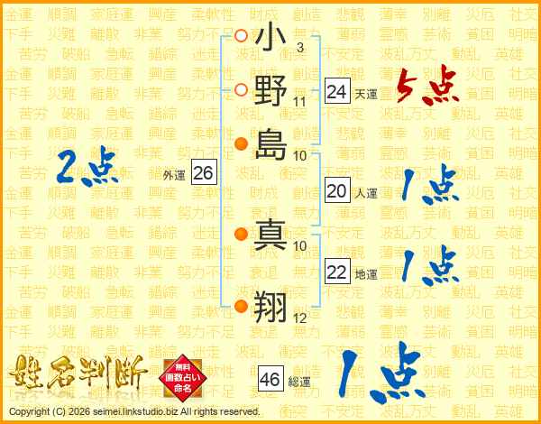 小野島真翔さんの総運は46画の1点!