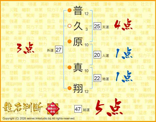 普久原真翔さんの総運は47画の5点!
