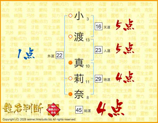 小渡真莉奈さんの総運は45画の4点!
