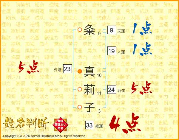粂真莉子さんの総運は33画の4点!