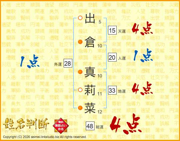 出倉真莉菜さんの地運は33画の4点!