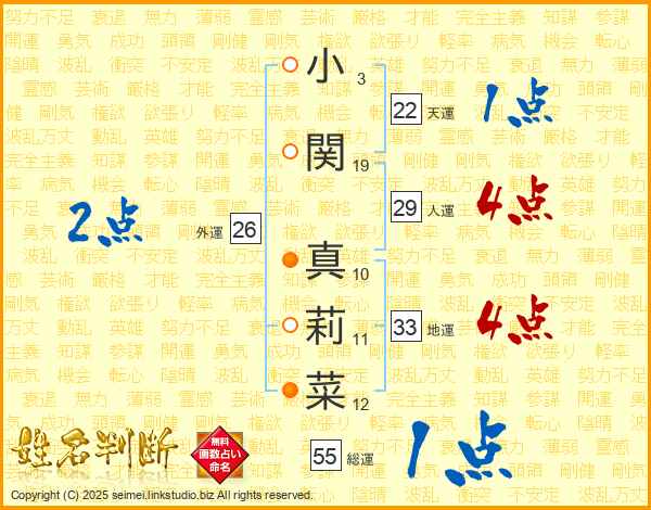 小関真莉菜さんの地運は33画の4点!